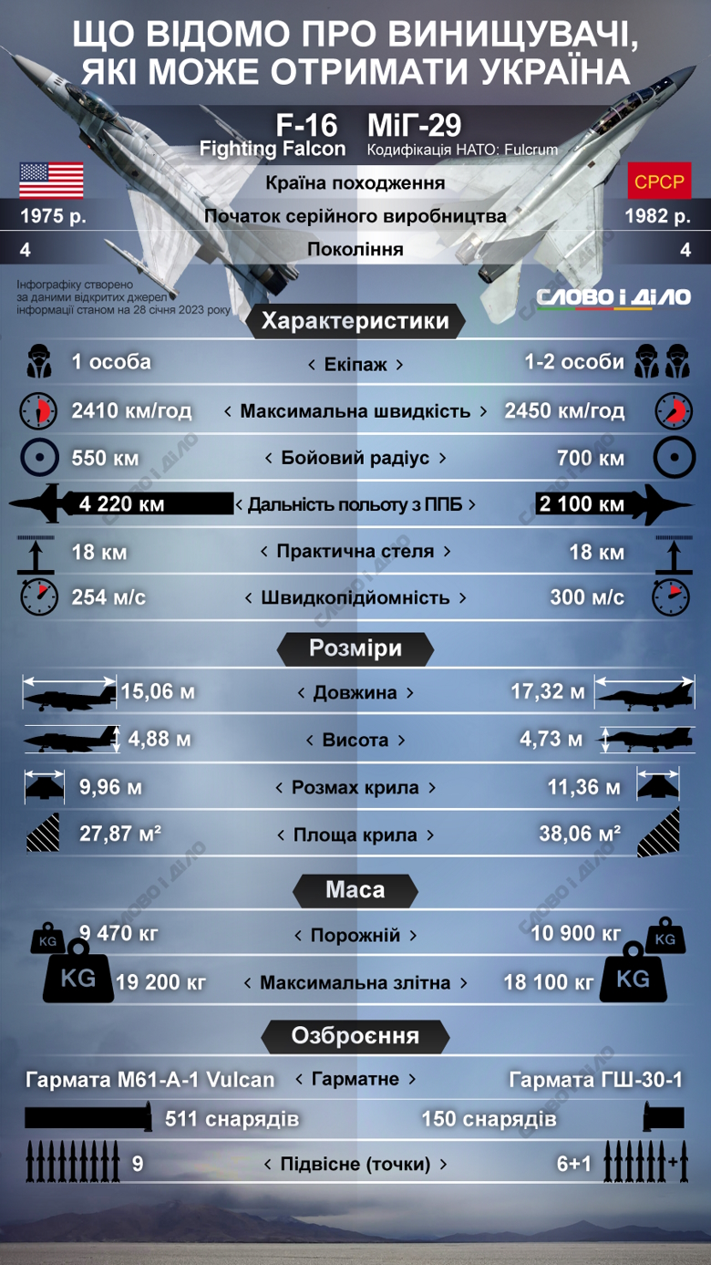Характеристики радянських МіГ-29, виробництво яких почалося в 1982 році, схожі на F-16, при цьому наші пілоти вже вміють літати на них і їх не потрібно буде додатково навчати.