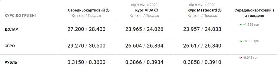 За курсом Нацбанку долар США сьогодні коштує 27,80 гривень, в обмінниках - 27,30 / 28,30 гривень, на чорному ринку - 27,80 / 28,00 гривень.