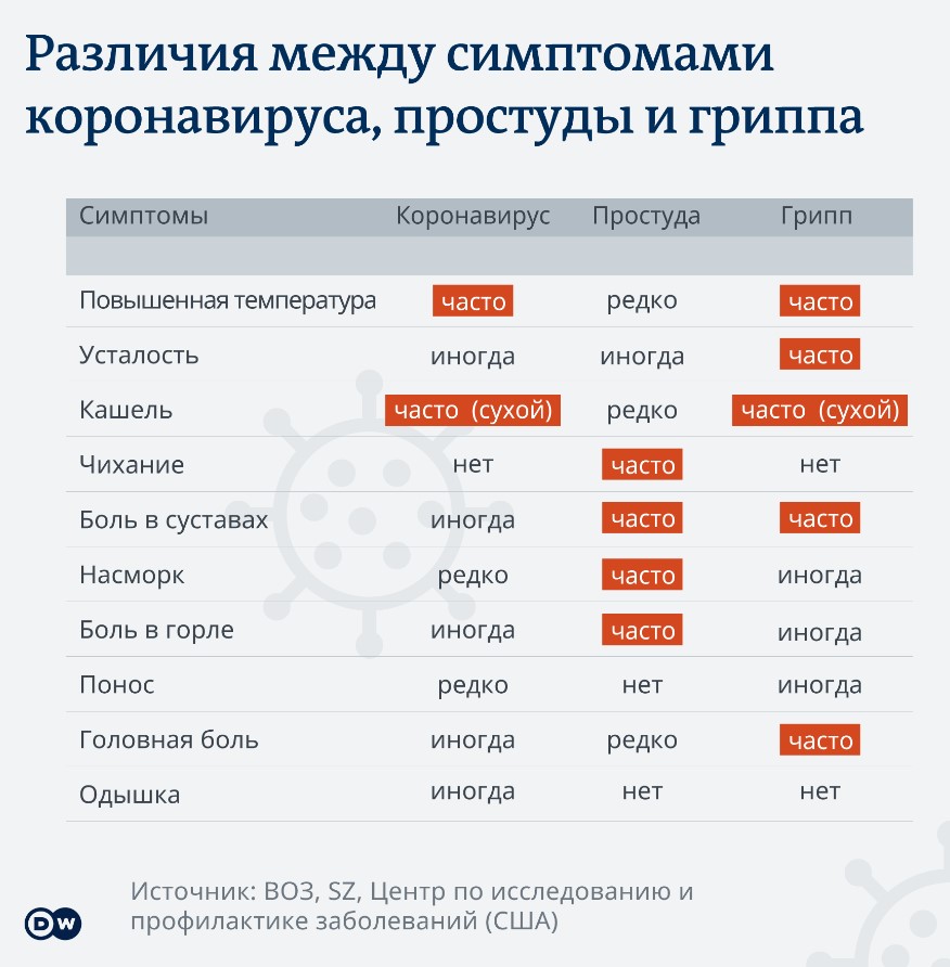 Крім того, багато людей, коли хворіють, приймають COVID-19 за типову застуду або грип. Класичні симптоми коронавируса такі ж, як і у сезонних застуд та грипу. Це перш за все, ломота в тілі, біль в суглобах, головні болі, висока температура, кашель, біль у горлі. Однак якщо до цього всього додається втрата нюху і смаку, задуха, підвищення тиску, біль в очах - варто насторожитися. Іноді коронавірус також маскується під "кишковий" грип, викликаючи нудоту, блювоту і діарею.