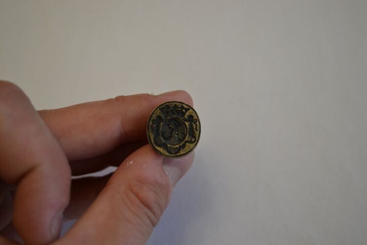 " Це - типова приватна печатка шляхтича першої половини ХІХ століття. Визначити, кому належить, можна лише випадково - на ній немає герба, а лише ініціали. Можливо, вона належала комусь із місцевих землевласників. На бронзовій підовальній (близькій за формою до овалу) печатці діаметром близько 20 мм зображено латинську літеру "R" та корону. Зі зворотного боку є вушко з отвором", - розповів доктор історичних наук Андрій Гречило, до якого музейні працівники звернулися за консультацією.