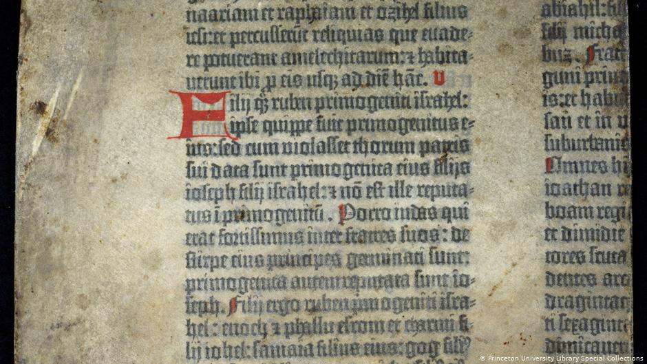 фрагмент Біблії Гутенберга, 1455 рік;