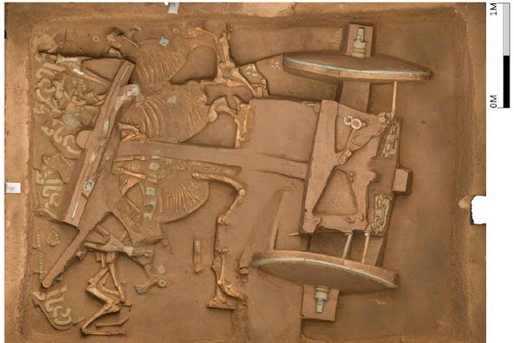 Йдеться про бронзової колісниці, датованій періодом правління династії Західна Чжоу (1046-771 роки до нашої ери).