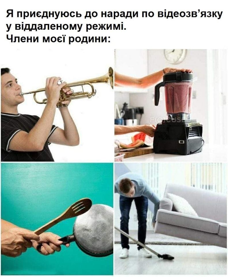 Автори картинок жартують з приводу казкової героїні Червоної Шапочки, подорож якої до хворої бабусі, називають першим випадком доставки їжі людям, які перебувають на самоізоляції, а також обіграють ситуації з втратою смаку через зараження коронавірусом і необхідністю виходити на зв'язок в умовах віддаленої роботи вдома, де співмешканці голосно займаються своїми справами.
