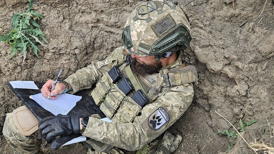 Зокрема 118 окрема механізована бригада показала, як бійці писали Радіодиктант національної єдності-2024 навіть у окопі.