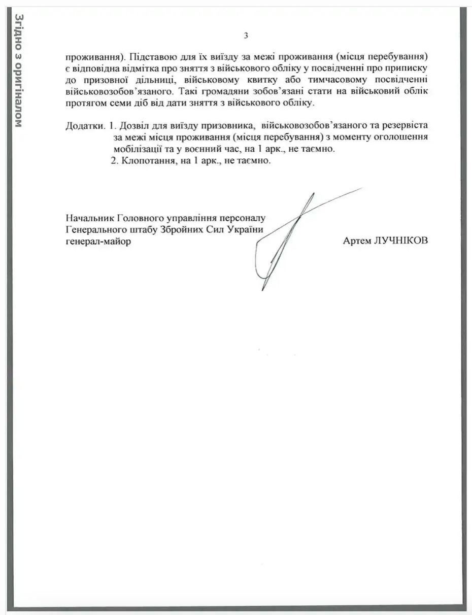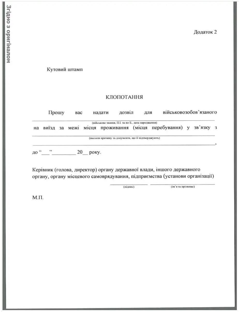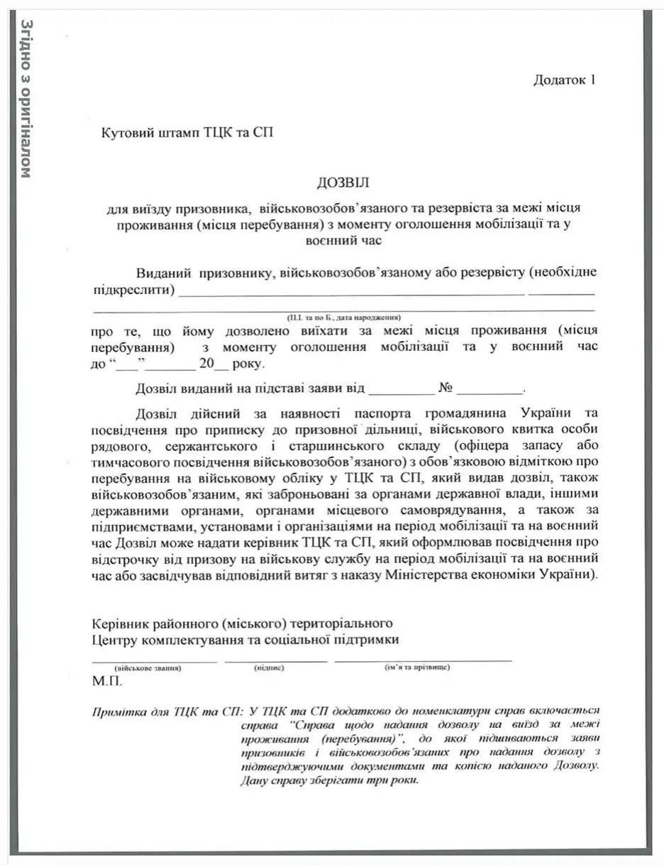 Так виглядатиме дозвіл військкомату на виїзд за межі місця проживання військовозобов'язаних чоловіків: