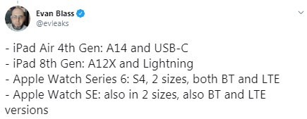 У вівторок ввечері, 15 вересня, компанія Apple на своїй новій презентації "Час летить" покаже iPad Air 4 і Apple Watch 6, проте інформацію про новинки злили в мережу до анонса.