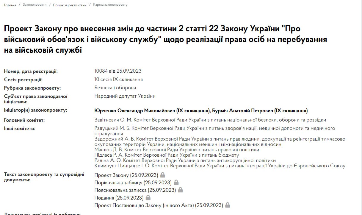 Відповідний проект закону опубліковано на сайті парламенту: пропонується внести зміни до частини 2 статті 22 Закону України "Про військовий обов'язок та військову службу" щодо реалізації права осіб на перебування на військовій службі.