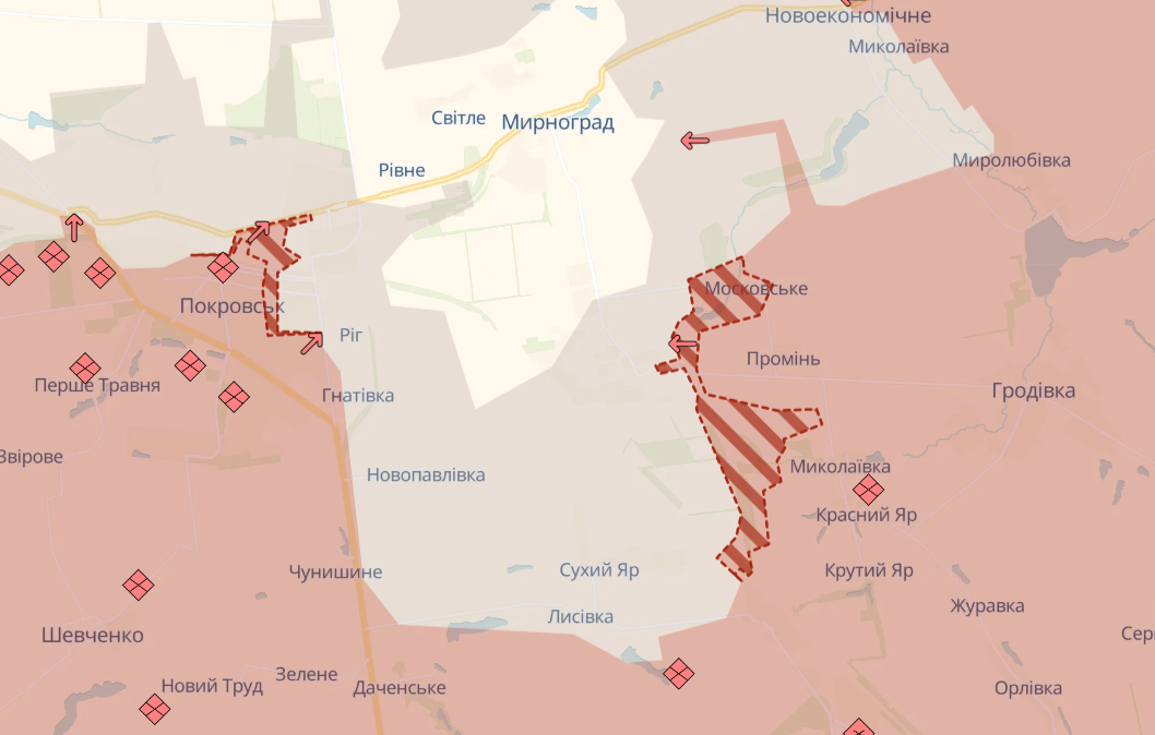 Аналітики також зазначили, що російські війська просунулися у Покровську, Мирнограді, поблизу Шахового, Миколаївки та Кам'янського.