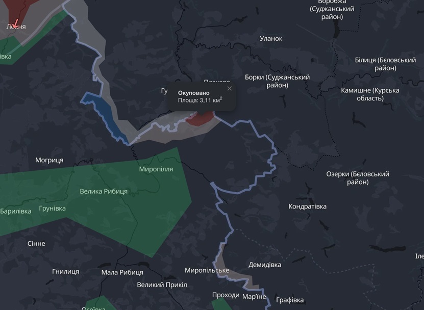 Як фіксує DeepState, росіяни просунулись в районі села Олександрія північніше Миропілля.