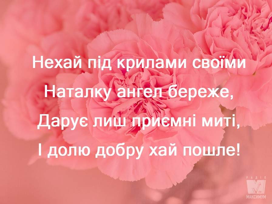 Дорога моя Наталіє, щиро вітаю тебе з красивим святом - Днем ангела. Хочу в цей день побажати тобі тільки одного: нехай твій ангел охоронець допомагає тобі летіти... коли твої крила будуть опускатися вниз.