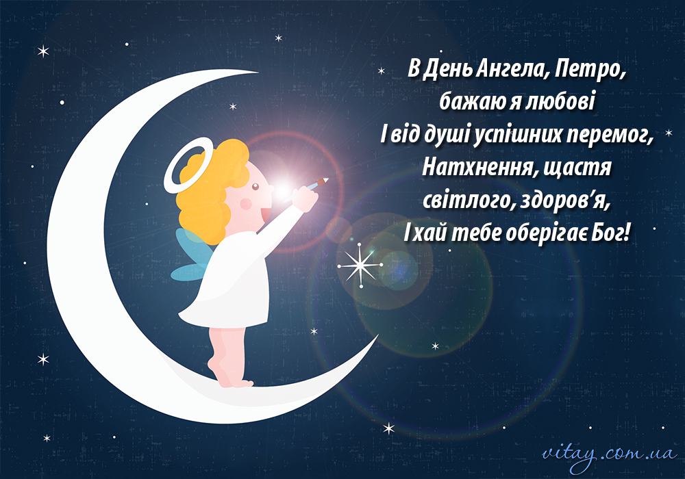 Вітаю з Днем Ангела! Нехай твій небесний охоронець буде завжди з тобою поруч і у хвилини радості та у хвилини смутку, любові й розлучень, щохвилини, щосекунди. Коли ти впадеш - він підніме, коли ти заплачеш - втішить, коли ти будеш радіти - він теж разом з тобою радітиме.