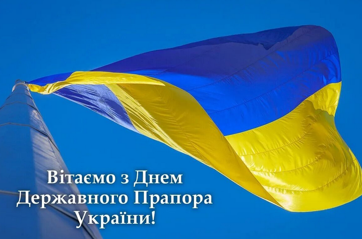 Вітаю з Днем Державного прапора України. Бажаю, щоб небо над головою було завжди ясним і блакитним, а урожай щедрим і багатим. Нехай прапор України гордо в'ється на вітрі і наповнює душу патріотизмом і прагненням до світлого майбутнього.