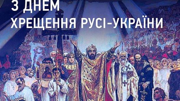 Дозвольте привітати вас зі знаменним для всіх нас святом - Днем Хрещення Русі-України. 1031 років тому князь Володимир охрестив наших пращурів, а сьогодні ми з вдячністю згадуємо про нього. Нехай Господь по молитвах святого рівноапостольного князя Володимира Хрестителя береже Україну та всіх нас!