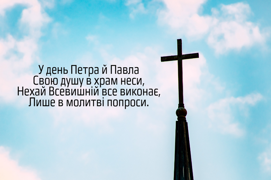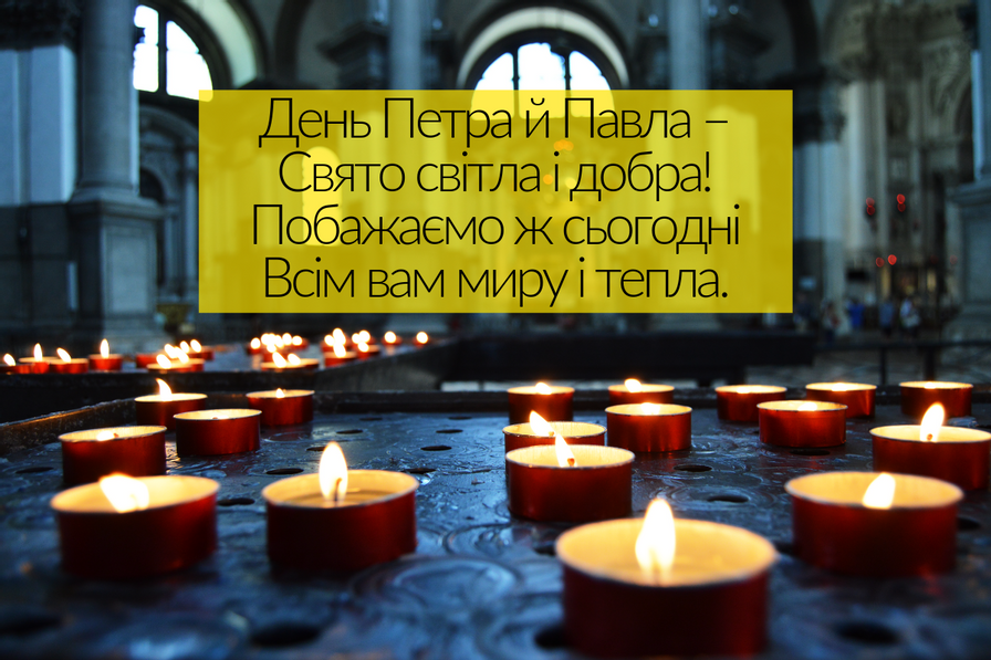 Бажаю в свято Петра і Павла нічого не боятися, не шукати на сонці плям, щоб кожен день проходив радісно і сприятливо для тебе і твоєї сім'ї.