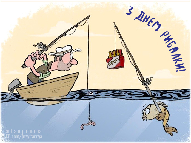 Знаючи твоє давнє захоплення, твою давню пристрасть - рибалку, бажаю тобі піймати таку рибу, щоб не вистачило довжини обох тобі рук, і щоб ти анітрохи не перебільшував її справжні розміри! З Днем рибалки тебе!