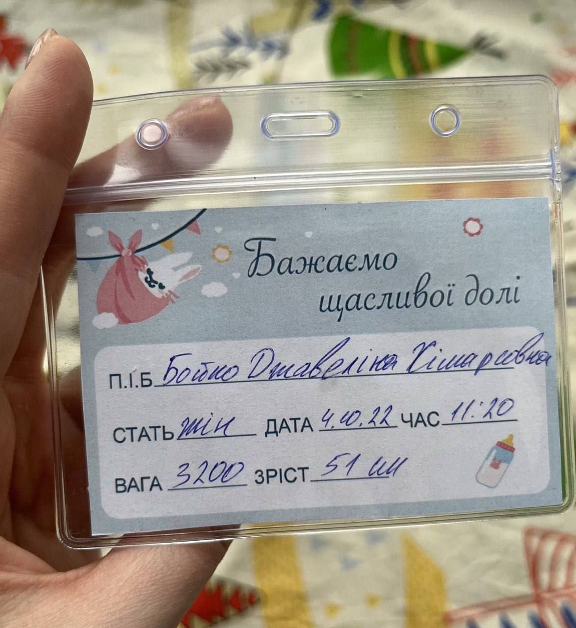 У мережі показали фото бірки новонародженої. Примітно те, що оригінальним виявилось не тільки ім'я, а й по батькові - Хімарсовна (HIMARS - реактивна система залпового вогню на колісному шасі).