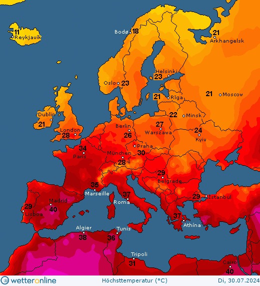 У понеділок, 29 липня, в західних областях очікується +20+25 градусів, на півночі, у центральних областях та на Харківщині +24+29 градусів.