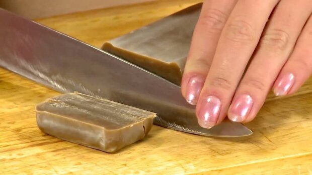 Мало хто знає, що господарське мило є чудовим засобом для боротьби з липким жиром та нагаром на посуді. З його допомогою можна навіть відчистити дуже сильні забруднення, просто засмаживши господарське мило.