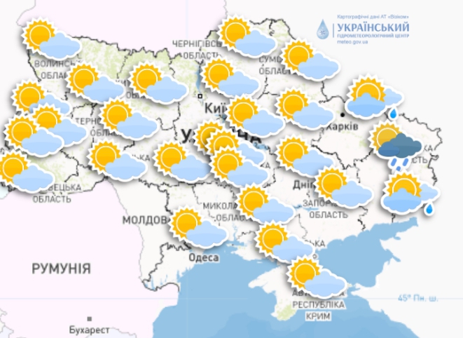 На заході, півночі, півдні та в центрі країни термометри покажуть +28…+31 °С, у Донецькій, Луганській та Харківській областях – близько +26 °С.
