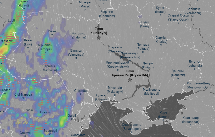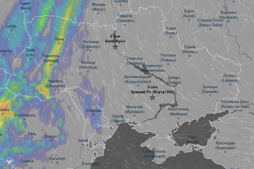 Про це свідчать дані метеоресурса Ventusky.