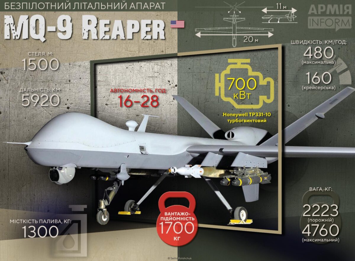 Видання зазначає, що Україна підняла MQ-9 Reaper на перше місце в списку бажань на найближчі місяці, адже вона шукає нові способи допомогти ідентифікувати російські цілі глибоко в тилу. Але повідомляється, що Сполучені Штати, не наважуються надати MQ-9 Reaper через побоювання, що Росія може їх збити.