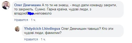 "А то ти не знаєш, - якщо дали команду закрити, то закриють. Сумно. Гарна країна, чудові люди", - написав у коментарі користувач мережі Олег Демчишин.
