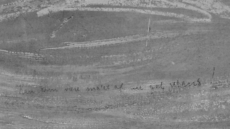 Фахівці Національної галереї Норвегії вивчили картину за допомогою інфрачервоного сканування і дійшли висновку, що автором напису був сам Мунк. Для цього вони звірили почерк, яким він зроблений, з листами і щоденниками художника.