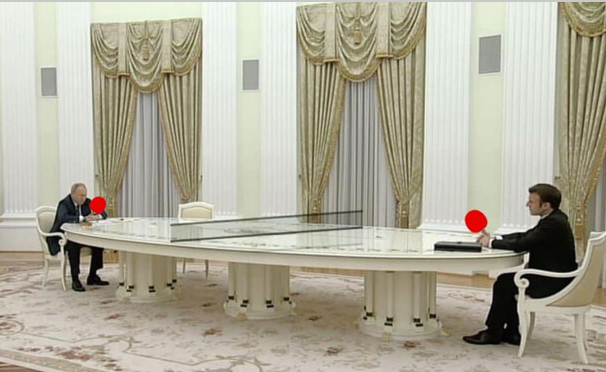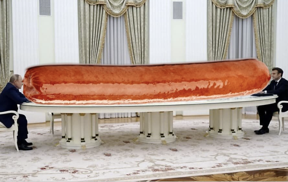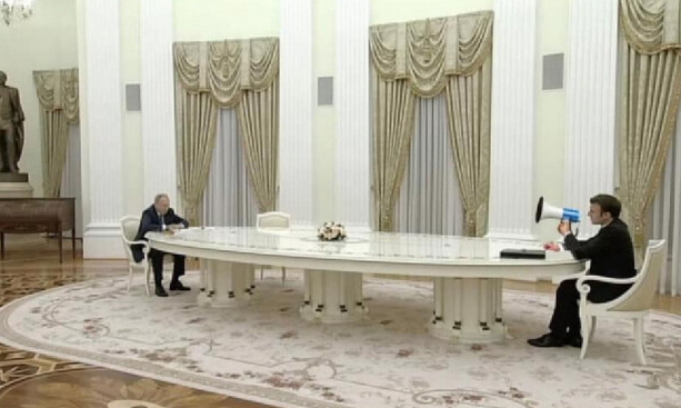 Основним елементом, який викликав масу жартів, став довжелезний стіл між лідерами країн.