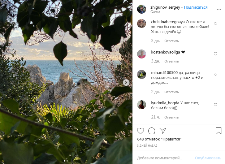 Відзначимо, що 2 січня у Жигунова був день народження. Можливо, він святкував його в Криму. Фото були опубліковані 6 і 4 січня.