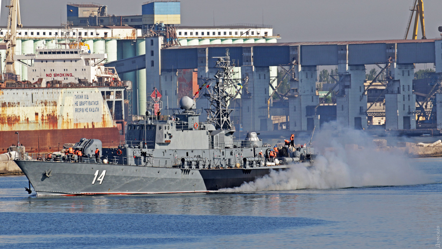 Першими, близько 7 години, пришвартувалися у військово-морській базі "Південь", що в Практичній гавані, корвети - румунський "Контр-адмірал Себастіан" (борт 264) і болгарський "Бадьорий" (борт 14).