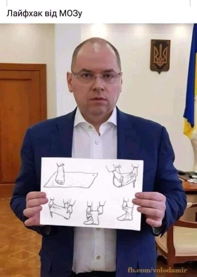 "Це і шкарпетки, і презерватив (на крайняк), і пов'язка на стегна, і навіть ганчірка для посуду. Питання в іншому: "А де в локдаун можна купити ці онучі? "Поділіться досвідом, можливо є якісь сайти, щоб замовити" , - посміялися в мережі.