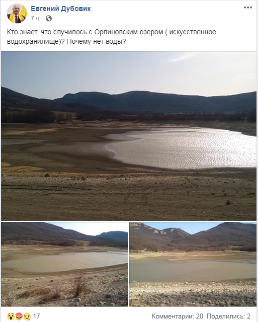 "Хто знає, що сталося з Орлинівським озером (штучне водосховище)? Чому немає води?", - пишуть місцеві жителі.