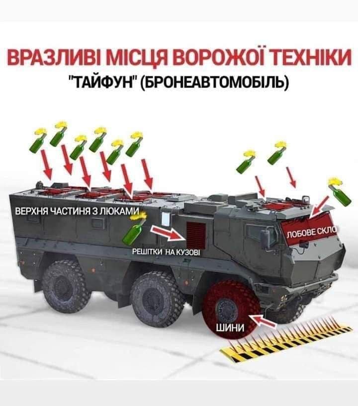 В українських соцмережах з'явилися інструкції, як ефективно палити "коктейлями Молотова" ворожу техніку.