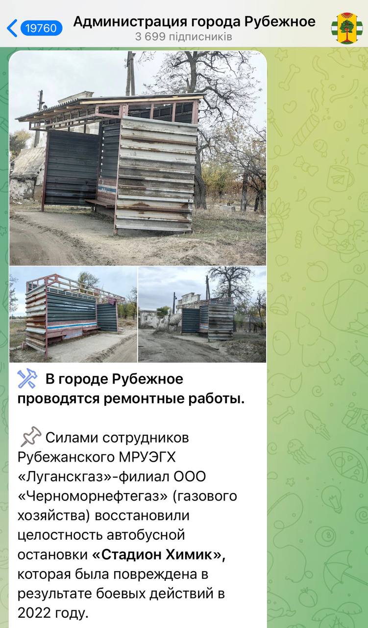 Казанський показав, як в одному російському Telegram-каналі показали проведеним ремонтом зупинки в тимчасово окупованому Рубіжному.