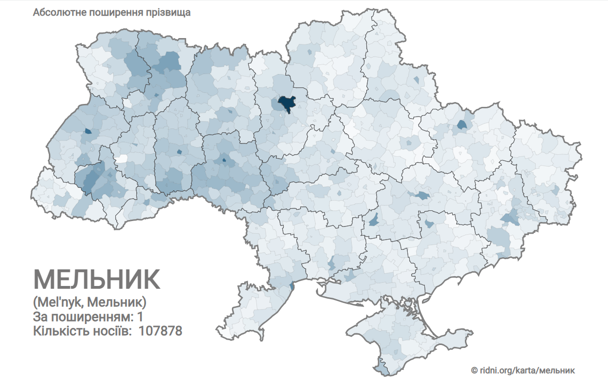 За словами експертів, Мельник є найпоширенішим прізвищем на території країни, а кількість носіїв перевищує позначку у 100 тисяч осіб - щонайменше 107878 громадян мають подібне прізвище.