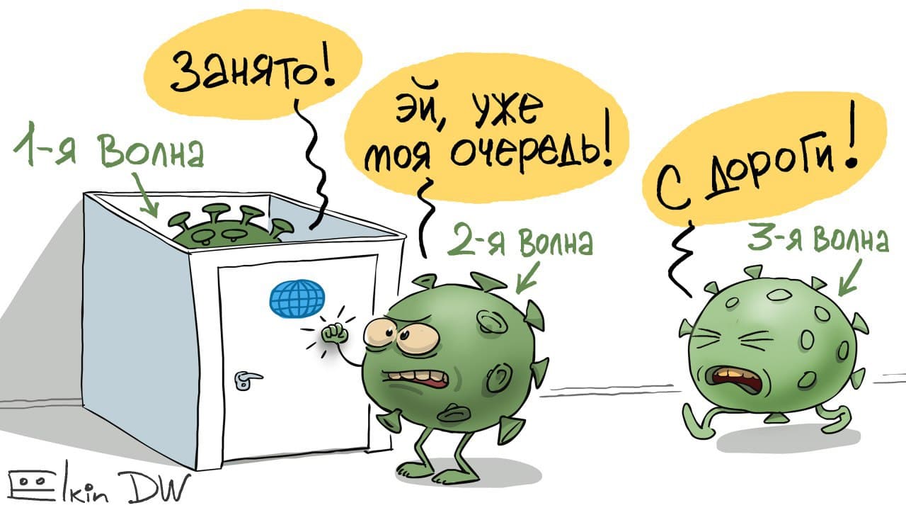 Всесвітня організація охорони здоров'я попередила, що Європі загрожує третя хвиля коронавірусу, якщо не буде вжито ефективних заходів для стримування епідемії, поки йдуть випробування вакцини. З'явилася кумедна карикатура на цю тему.
