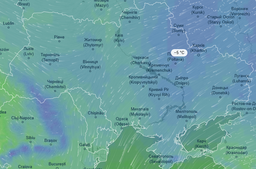 У вівторок, 11 лютого, вночі очікується до -7 градусів на більшій території України, окрім Дніпропетровщини, де буде 3 градуси морозу. Вдень триматимуться невеликі морози від -1 до -3, лише на Закарпатті потепліє до +4 градусів.