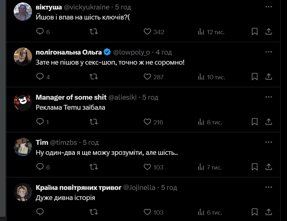 У підсумку медики вилучили ключі та через три тижні виписали пацієнта. Однак у соцмережі Х цей випадок викликав великий резонанс. Зокрема користувачі не зрозуміли мотивів пацієнта, який ймовірно ковтав ключі і спробували надати свої пояснення цій ситуації.