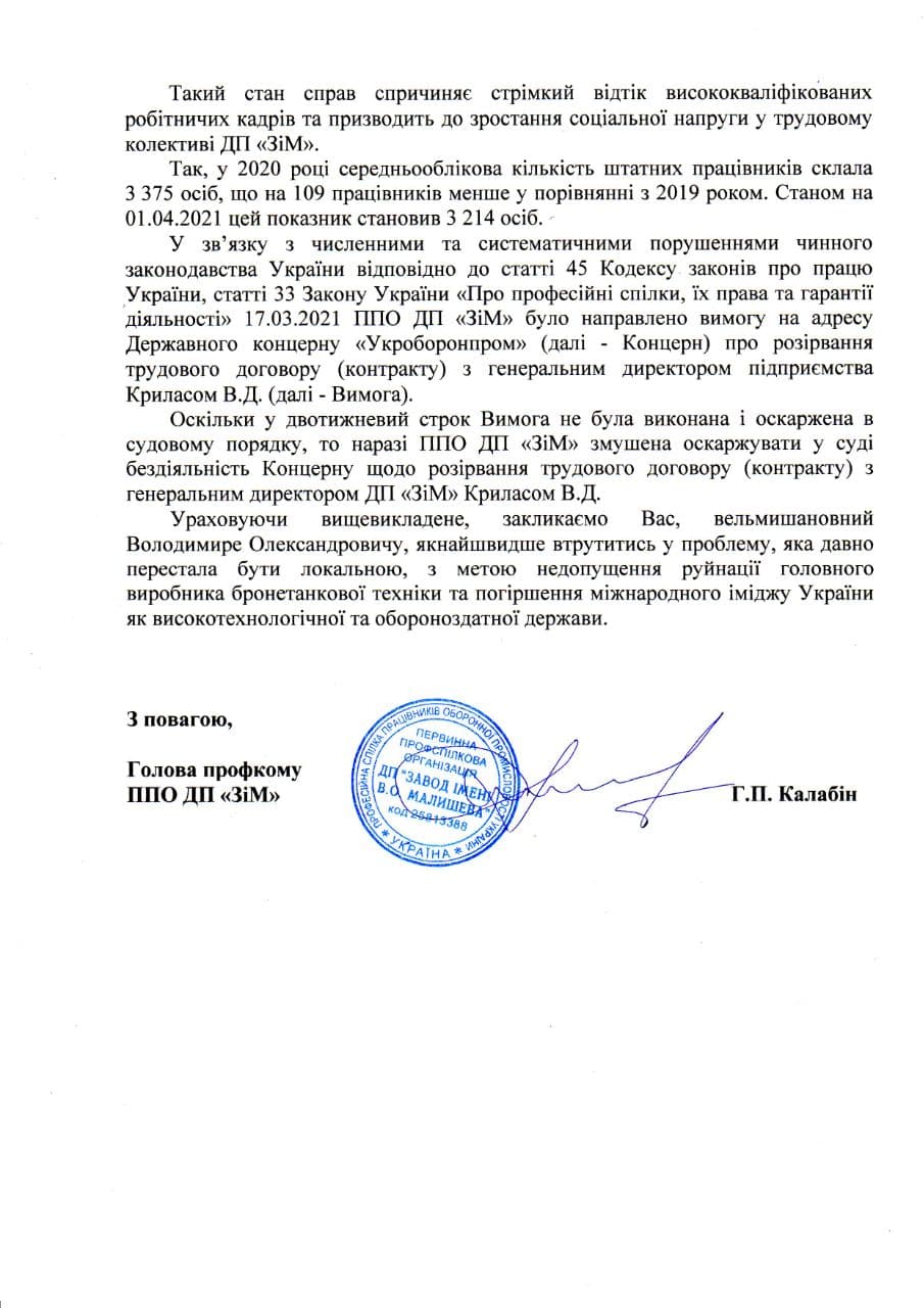 У цьому документі профспілковий лідер висловив стурбованість поточним фінансовим станом на підприємстві. Зокрема, він навів показники, які свідчать про справжню кризу: