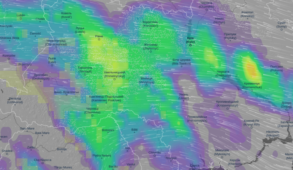 Про це йдеться в повідомленні погодного ресурсу Ventusky.com.