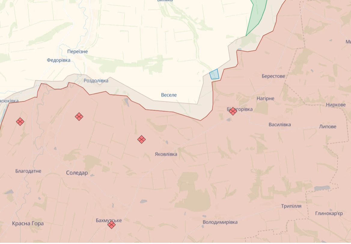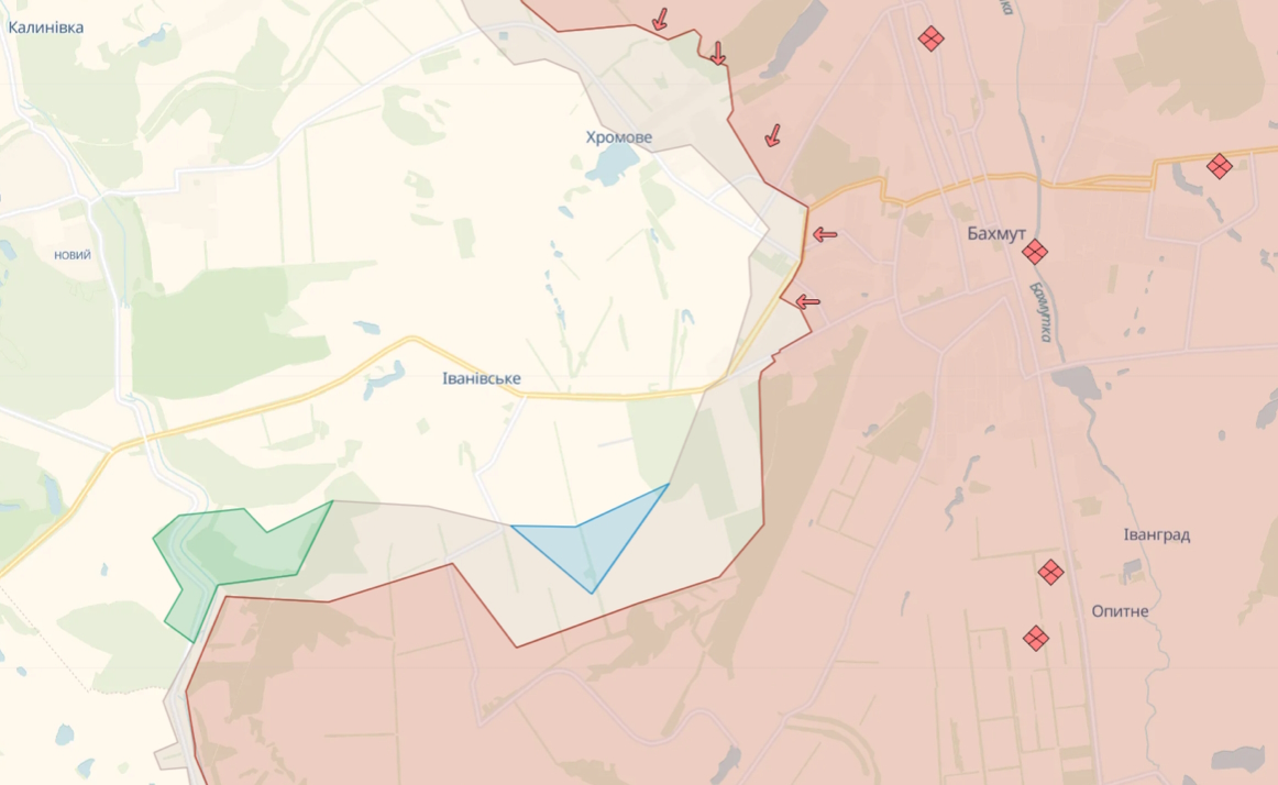 У той же час інтерактивна мапа Deep State вказує на те, що Сили оборони відбили у російських загарбників позиції на південь від Іванівського та Хромівського поблизу Бахмута.