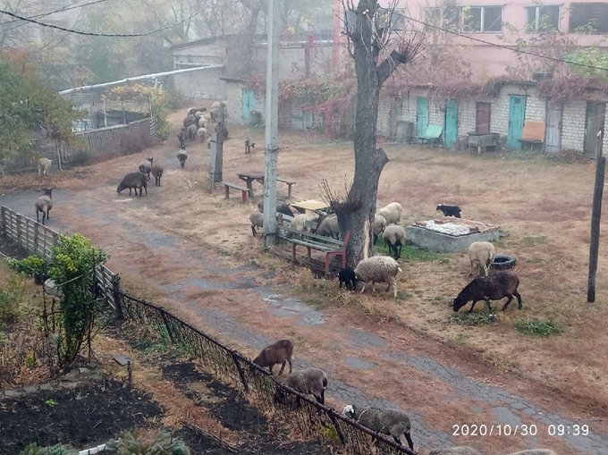 30 жовтня з вікон одного з житлових багатоквартирних будинків біля станції Рутченково побачили ціле пасовище. На подвір'ї біля лавочок паслися вівці.