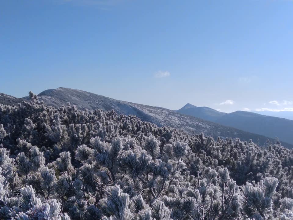 В Українських Карпатах в останні дні осені вже встановила своє володарювання зима - в горах тримаються морози, на землі лежить сніг, а вкриті інеєм дерева і чагарники нагадують казкові декорації.