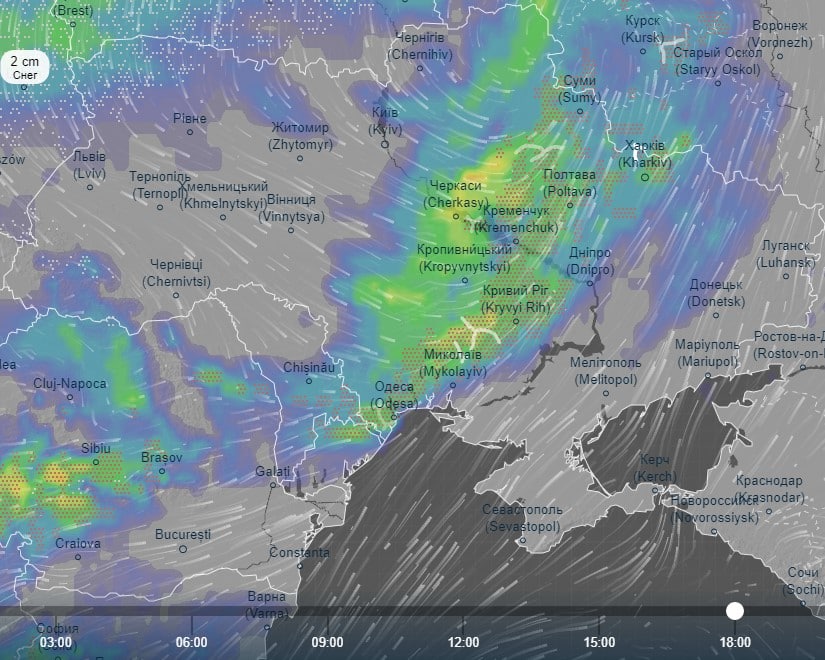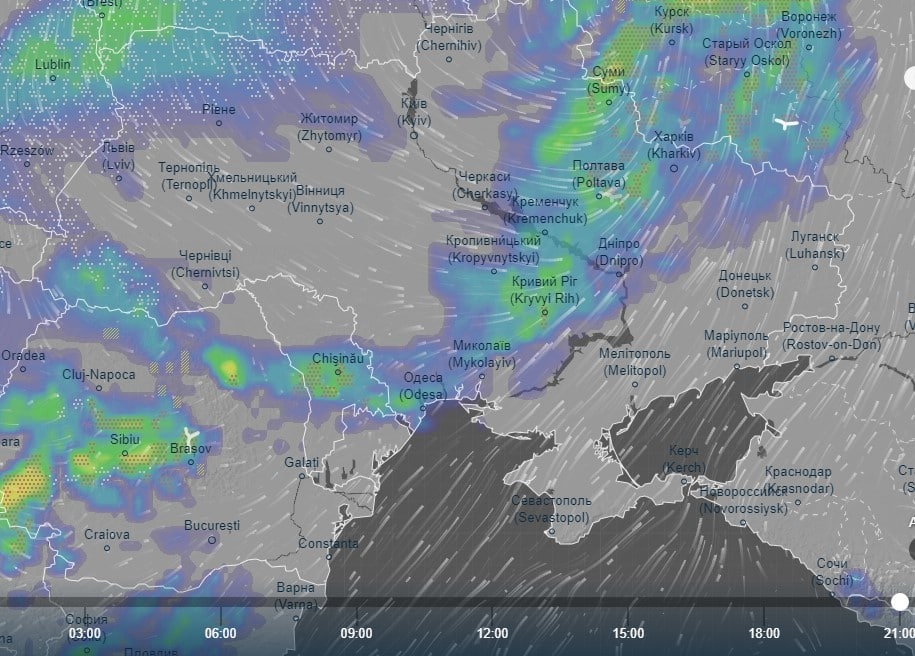 Про це свідчать дані інтерактивного погодного радару Ventusky.