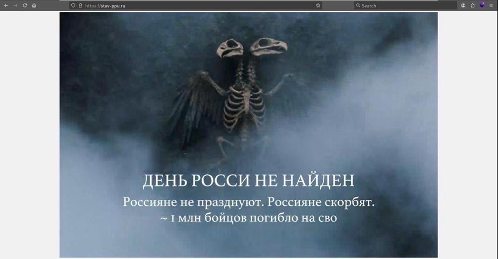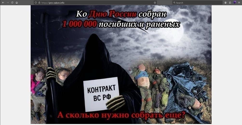 Замість перших сторінок сайту там розміщено зображення скелета двоголового орла з підписом, що втрати рф сягнули 1 000 000 осіб.