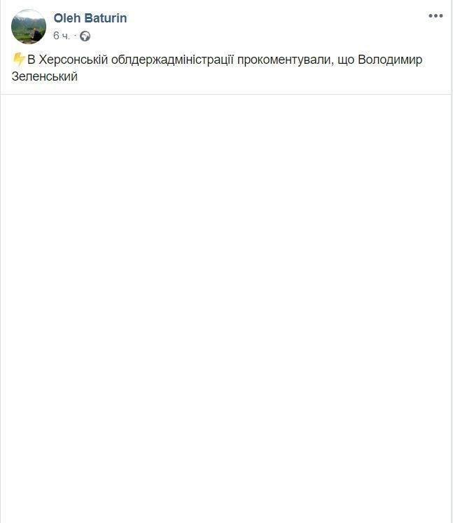 "Сьогодні президент поїхав до Херсона перевірити, як ідуть справи на його "Великому будівництві", але супроводжувати його пощастило не всім. Деякі херсонські ЗМІ не отримали акредитацію і влаштували інноваційний протест. На сайтах публікують "статті" про Зеленського, але там немає нічого - порожня сторінка, заголовок і обривки тексту", - йдеться в повідомленні.