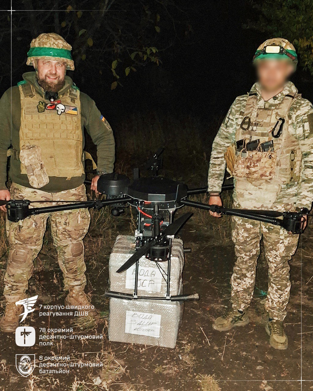 «Так з’явилася нова система логістики, яка дозволяє дронам доставляти їжу, воду, медикаменти, елементи зв’язку та інші необхідні речі туди, куди не може пройти людина. Це не про боєкомплект – це про життя побратимів», - каже один із операторів дрона Vampire «Вікінг» у 8 одшб 78 ОДШБ.