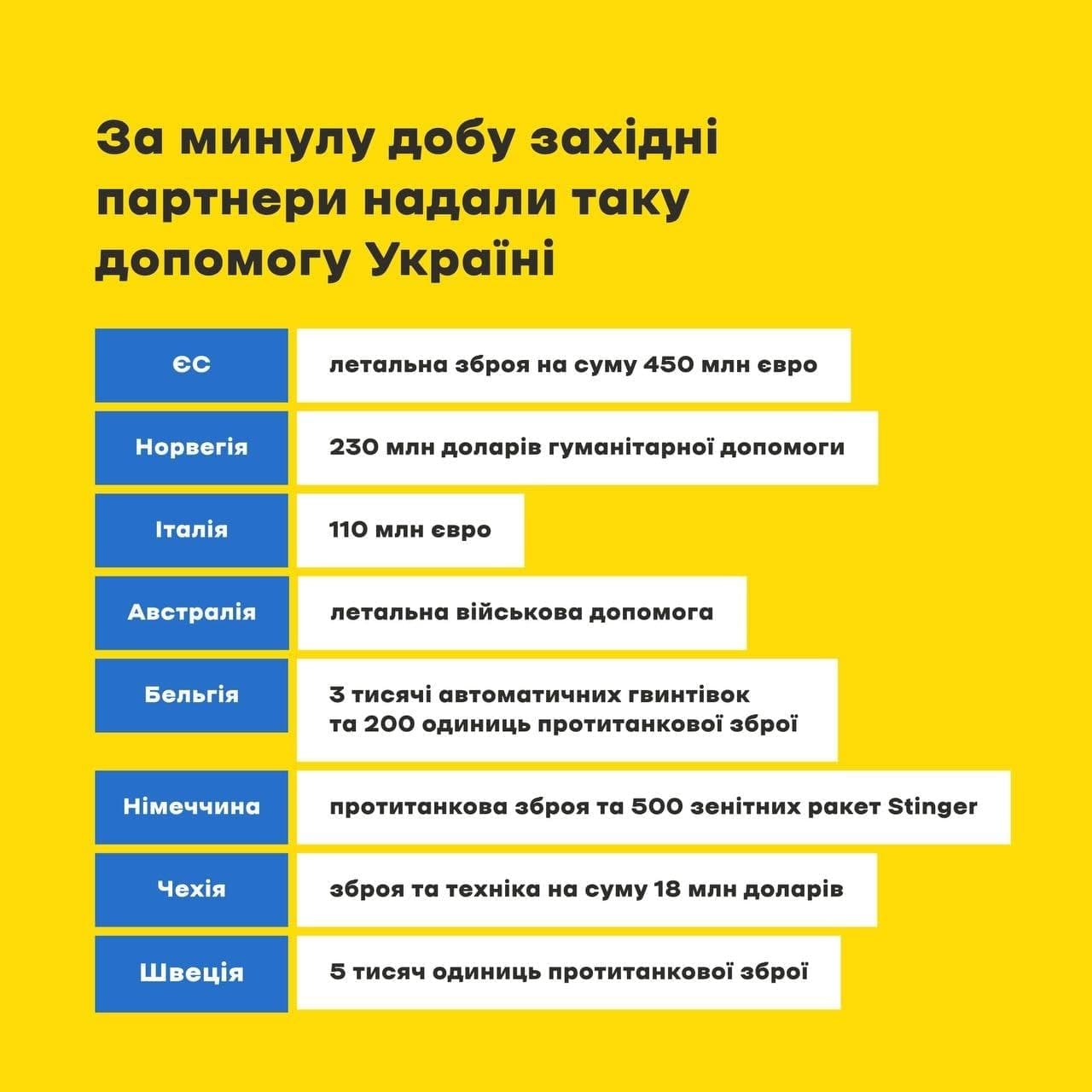 Україна за останню добу отримала велику підтримку від своїх зарубіжних партнерів, які стривожені вторгненням Росії.