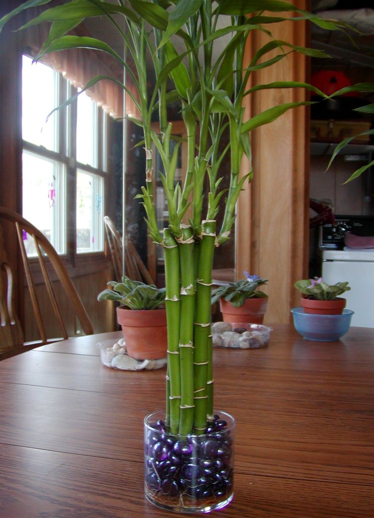 Досить популярна рослина, яка не потребує особливого догляду - драцена Сандера. Її зазвичай продають під назвою "щасливий бамбук" у вигляді пучка зелених стебел, поміщених у вазу з водою та дрібними камінчиками. Цю драцену достатньо поставити в у надто сонячному місці і раз на два тижні міняти воду.