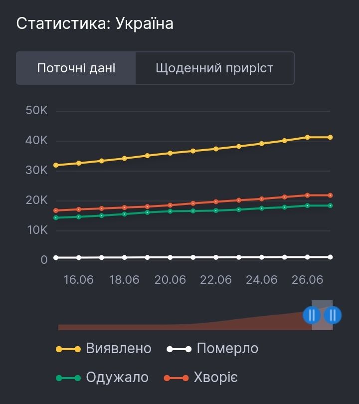 Нагадаємо, станом на ранок п'ятниці, 26 червня в Україні було зафіксовано 41 117 тих, що заразилися коронавірусів, за добу додалося 1 109 нових випадків.